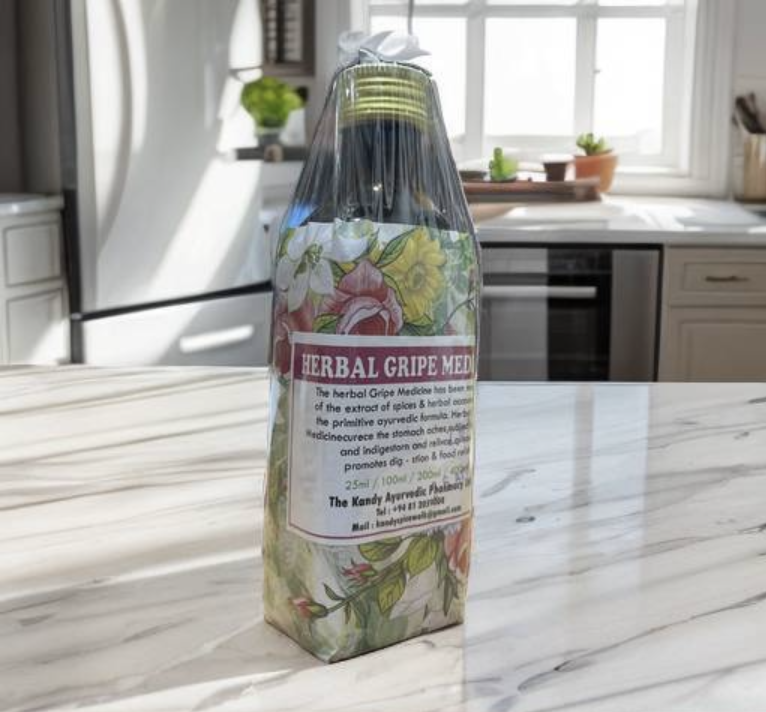Herbal Gripe Medicine is made out of extracts of herbs and spices according to a primitive Ayurvedic formula. Herbal Gripe Medicine cures Stomachaches caused by Vitamins and Indigestion. Helps Digestion.